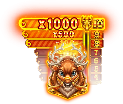 Landing 4 or more Reindeer Symbols anywhere on the reels will award an Instant Prize Win, relative to the number of Reindeer Symbols landed: