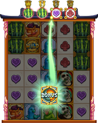 The Lucky Bamboo Feature starts with 3 spins that will reset each time a Golden Bamboo Symbol lands. The following symbols can land: